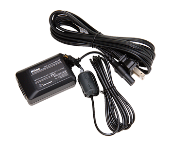 Отдельный сетевой блок питания, рассчитанный на широкий диапазон сетевого напряжения, обеспечивает питание некоторых моделей фотокамер COOLPIX непосредственно от электрической розетки. Он является идеальным выбором при необходимости длительного осуществления работы или загрузки снимков в компьютер. Снабжен разъемом питания, который можно подключить к батарейному отсеку фотокамеры. Работает при напряжении питания 110 – 240 вольт.